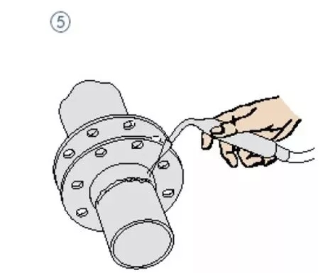 2、將四對螺栓螺母輕輕插入法蘭孔,將螺母稍加擰緊以校正法蘭面的平面度;