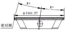 硬密封蝶閥的密封面是斜錐面,閥體密封圈(圖1)與蝶板組合件密封圈(圖2)的接觸為面接觸,其工作原理是靠驅(qū)動(dòng)裝置扭力直接帶動(dòng)蝶板組合件,使蝶板組合件密封圈與閥體密封圈充分接觸后產(chǎn)生彈性變形而密封。硬密封蝶閥作為一種高性能閥門,具有耐腐蝕性好、密封可靠、開(kāi)啟力矩小等優(yōu)點(diǎn)。硬密封電動(dòng)蝶閥DN1200,其中閥體密封圈材料為1Cr18Ni9Ti,蝶板組合件密封圈材料為復(fù)合的不銹鋼板與石棉板夾層組合件,閥體密封圈與蝶板組合件密封圈的加工質(zhì)量直接決定蝶閥密封性能。
